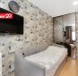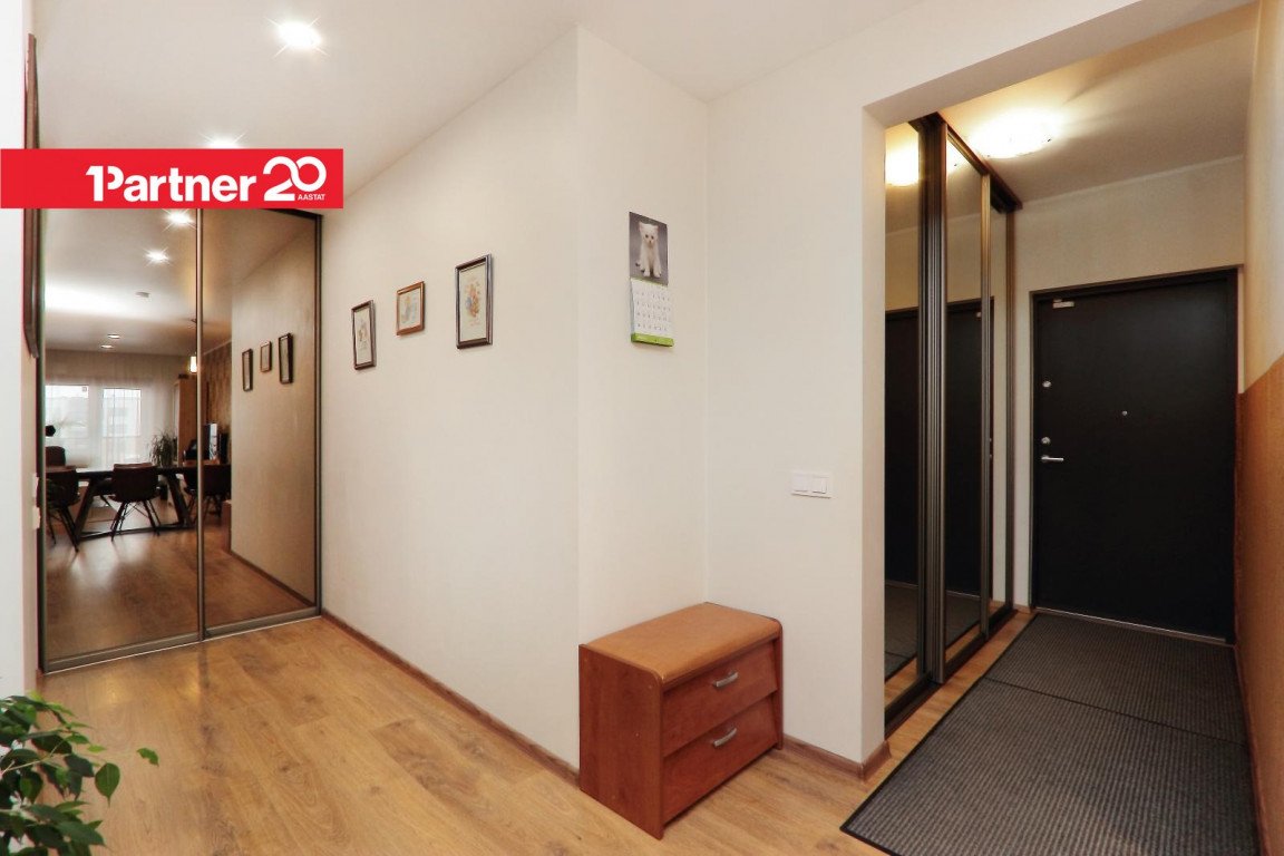 Korteri põrandatel on laminaatparkett. Seinad on värvitud heledates toonides ja osaliselt tapeeditud. Pinglaed. Esikus ja kahes magamistoas on sisseehitatud garderoobikapid. Vannitoad on viimistletud keraamiliste plaatidega ja varustatud põrandaküttega.
