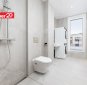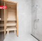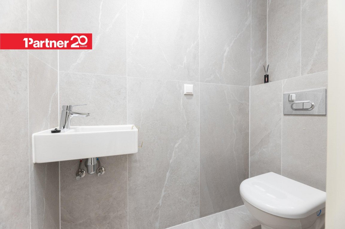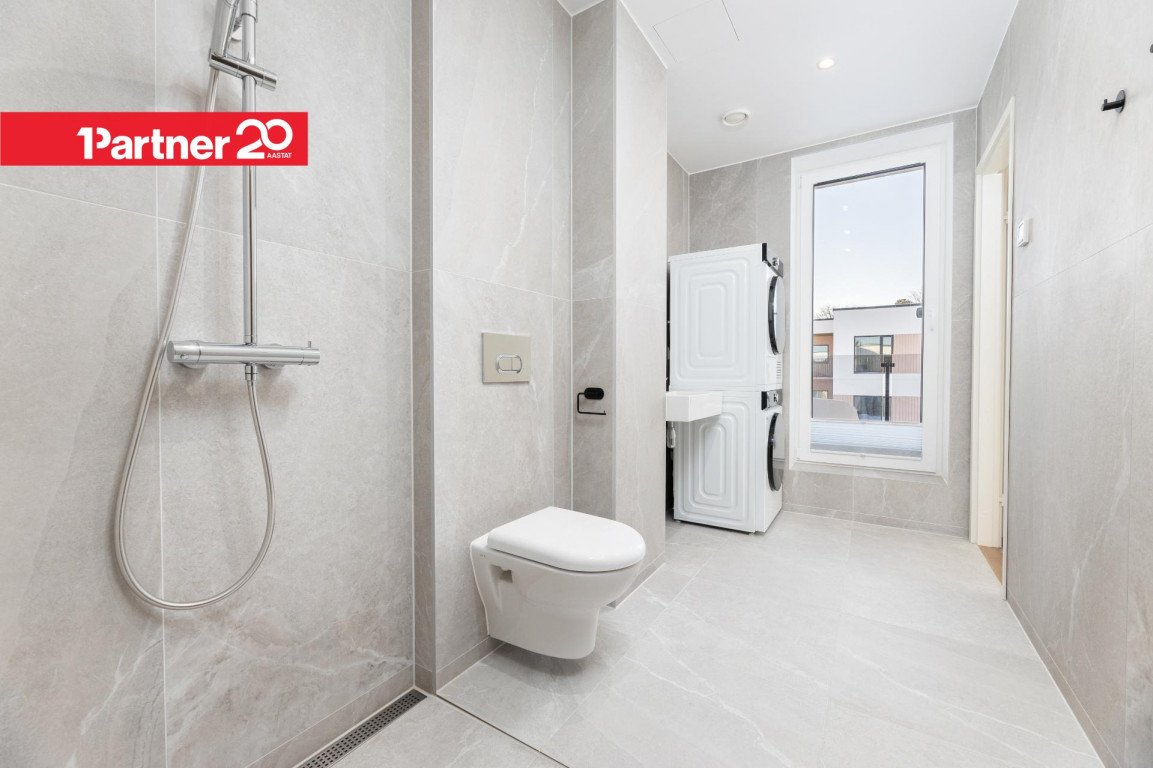 Korteris on kaks tualettruumi. Suurem on varustatud duši ja saunaga, lisaks pesumasin ning kuivati (soovi korral jäävad need sisse). Duširuumist pääseb aknaga ukse kaudu otse terrassile.