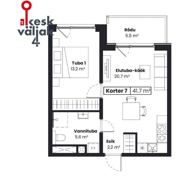 Üürile antakse 2-toaline möbleeritud korter Keila hinnatud 2023.aastal valminud Uusarenduse majas aadressil Keskväljak 4!
