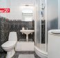 WC ja vannituba koos. Dušinurga uksed on veidi väsinud, aga sanitaartehnika korralik ja dušš töötab.
