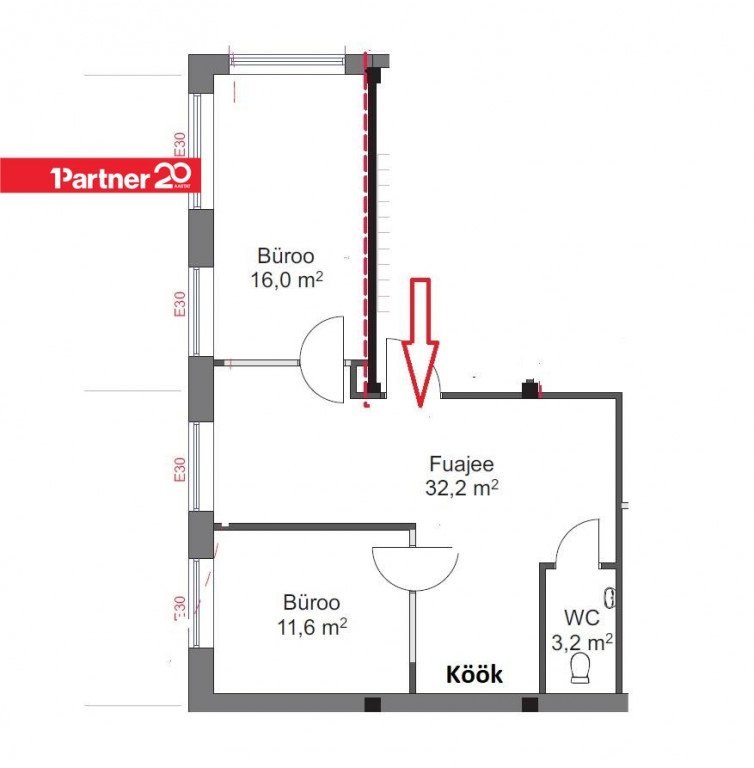 • Hea planeering: vastuvõtuala, kaks kabineti, köögi ja puhkeala, WC.