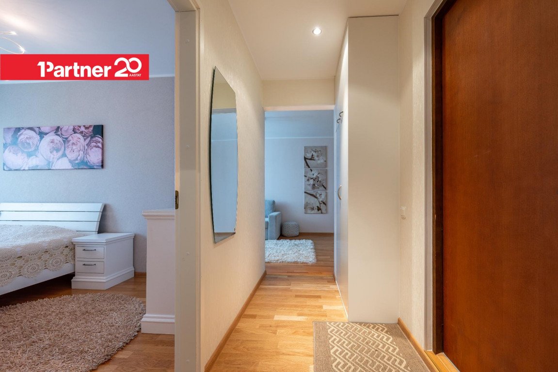 Elutoas paikneb terve seina ulatuses mahukas peegel-lükandustega garderoobikapp.