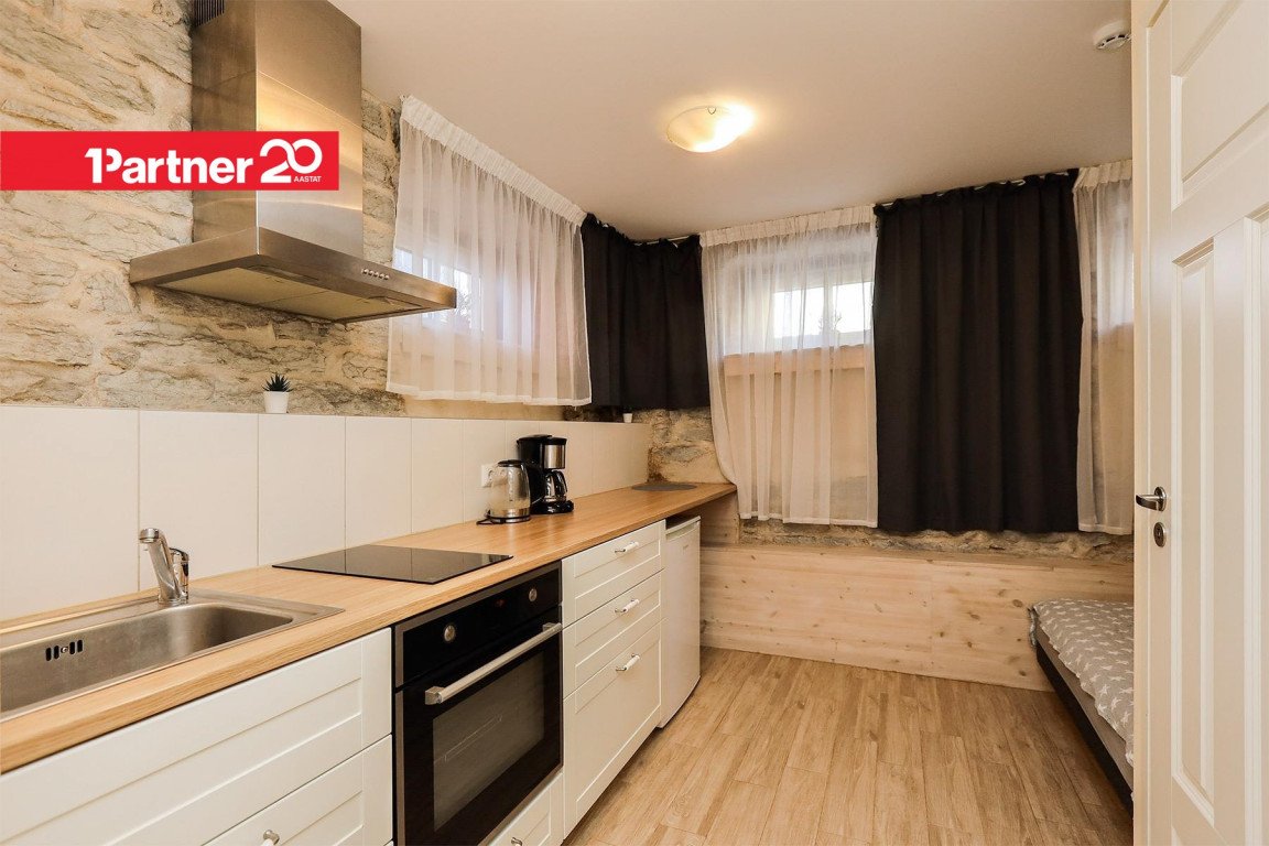Köögis köögimööbel koos tehnikaga. Tuba ja köök asetsevad eraldi.