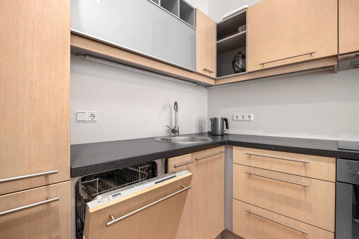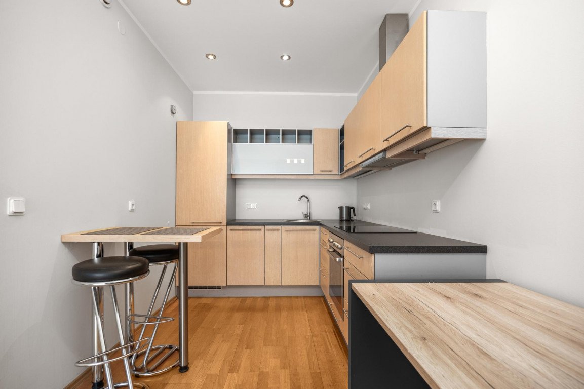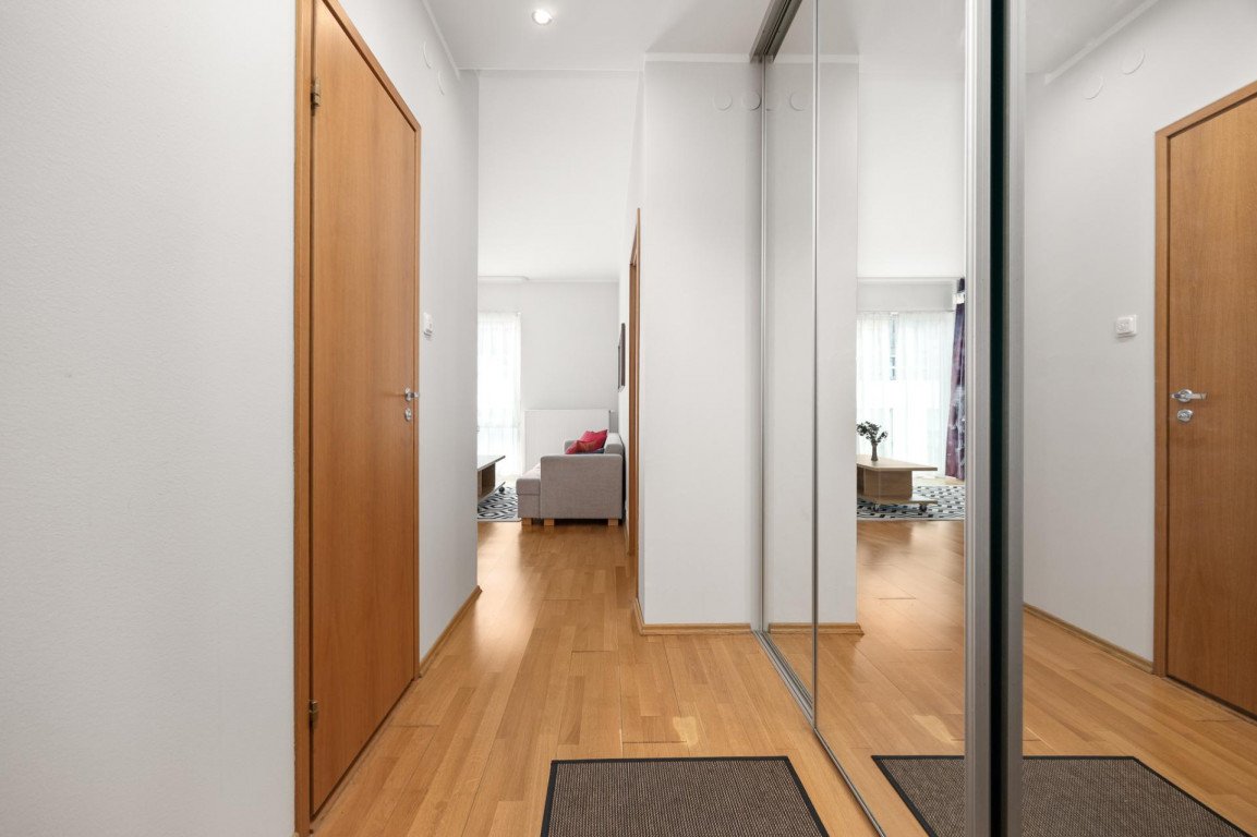 Tavapärasest suurem 2-toaline korter on meeldivalt avar ja asub hoone kuuendal korrusel, vaadetega Tatari tänava suunal. Elamises on küllaldaselt hoiustamise ruumi. Esikus on lükandustega garderoobi kapp ning magamistoast pääseb mahukasse walk-in garderoobi. Köök ja elutuba on avatud planeeringuga ning ruumi poolest piisavalt suur mahutamaks kodukontor või suurem söögilaud.