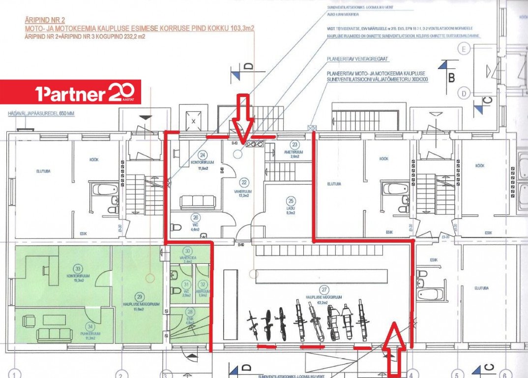 • Mitteeluruum M 2 - 1. korrusel kaubanduspind 103,3m² (kaasomand notariaalselt kinnitatud kasutuskorraga).