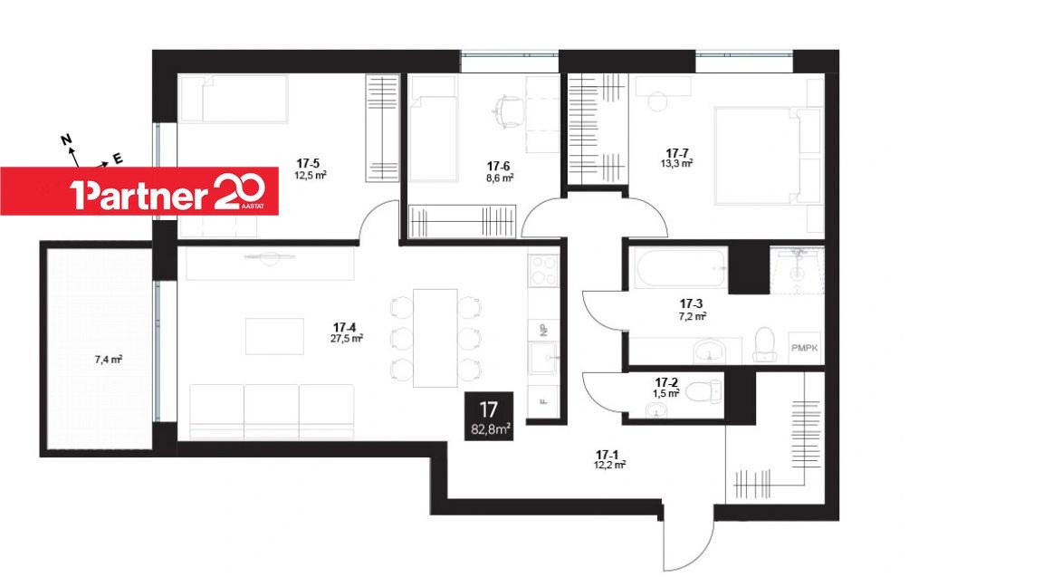 * Korteri üldpind on 82,8 m², millele lisandub 7,4 m² suurune rõdu, pakkudes avarat ja peresõbralikku eluruumi.