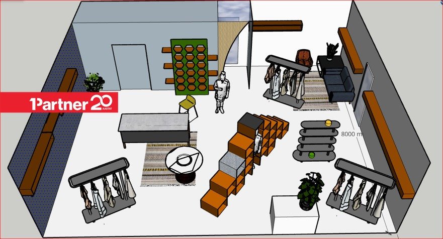 - Space from 1 m², with use of store fixtures (shelves, rails, tables, etc.)