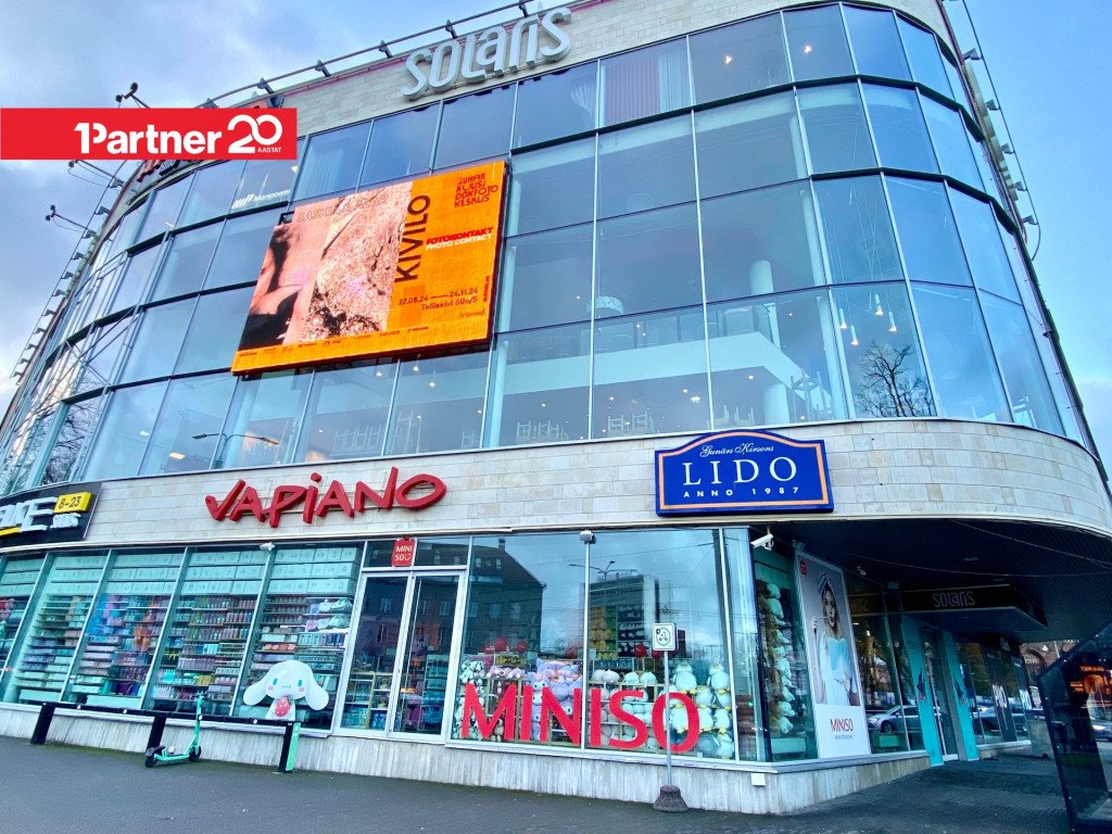 Üürile anda paindlik kaubanduspind nähtavas riietepoes Solarise keskuse sissepääsu juures.
