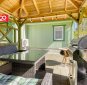 Krundi tagumine osa pakub võimalust isikliku lõkkeplatsi ümber mööda saata mõnusaid perekeskseid lõkkeõhtuid. Samuti asuvad hoovi tagaosas nii komposteerimiskastid, puukuur kui ka lukustatud aiamaja, kus on mugavalt ruumi kogu majapidamistehnika hoiustamiseks. Hoovist leiab tulevane omanik nii viljakaid marjapõõsaid, õunapuid kui ka maasikapeenraid. Majaesine tänavakividega kaetud plats võimaldab pidada grilliõhtuid igal aastaajal, sest korralik katusealune püüab kinni kõik suuremad sademed.
