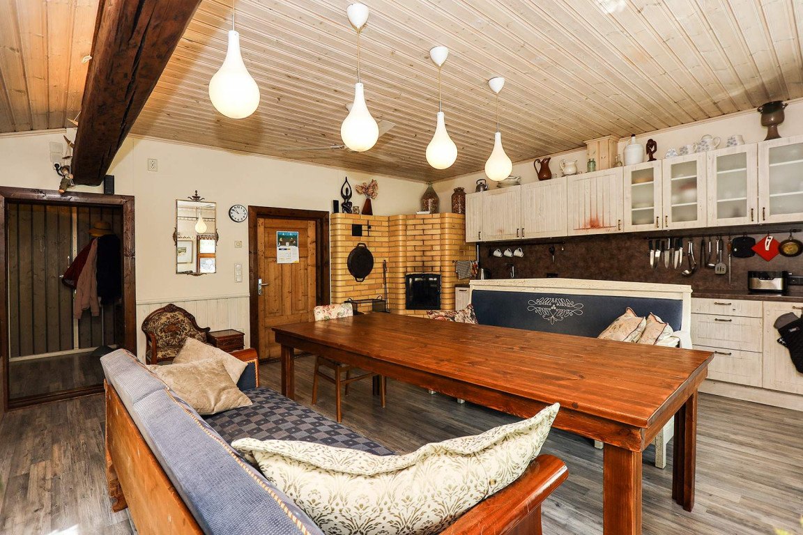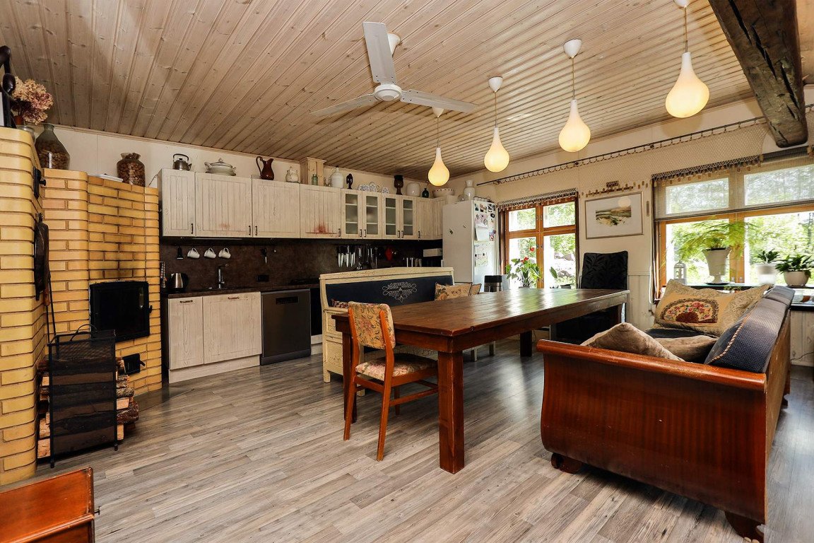 Väga hubase ja huvitava interjööriga eramu, kus kasutatud rohkelt maakodusse sobivaid sisustuselemente, stiilseid valgusteid, mööblit ning hinnalist perenaise valmistatud käsitööd.