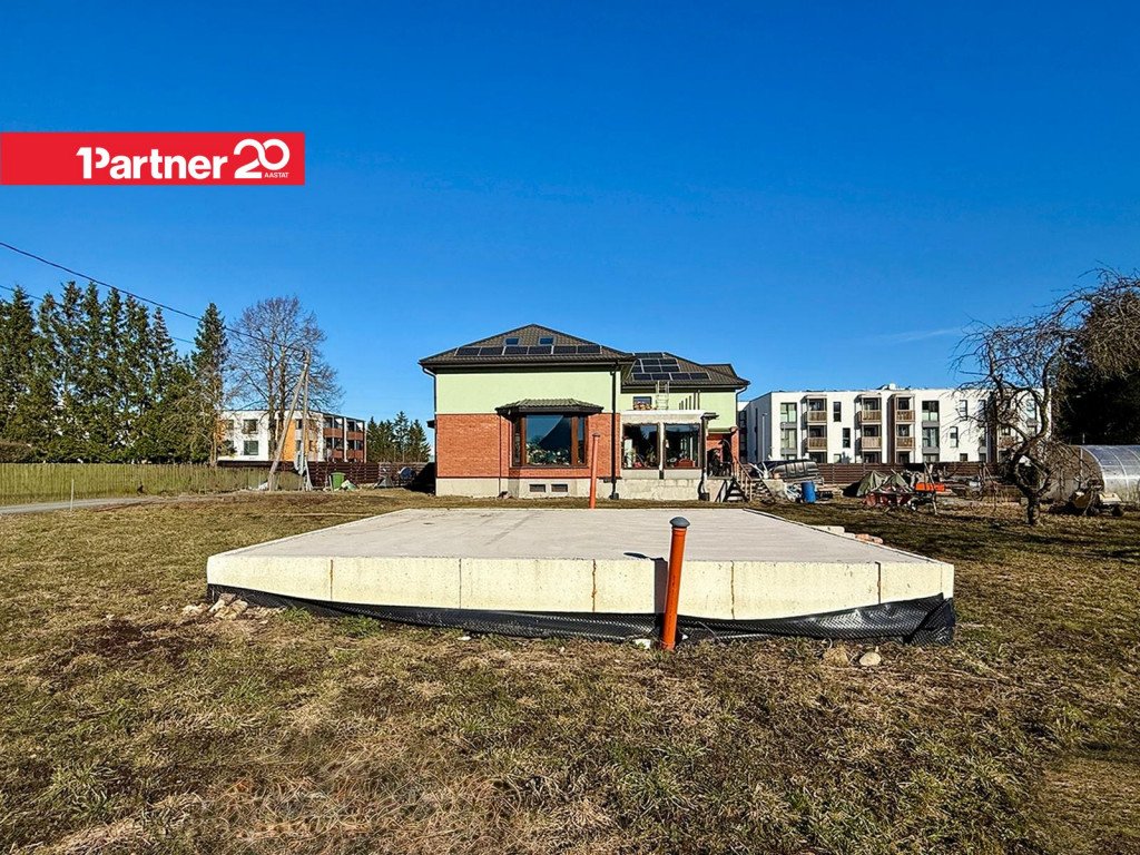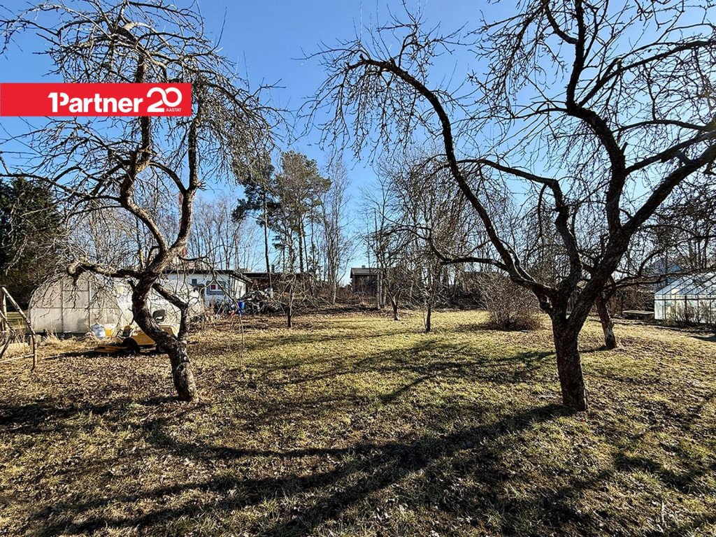 Krunt on puhas, tasane ja roheline, kus kasvavad õunapuud ja marjapõõsad. See on ideaalne kaasaegse eramaja, paarismaja või suurema hoone jaoks koos aia, terrassi ja parkimisega.