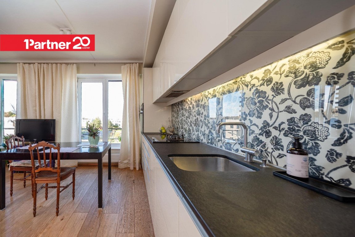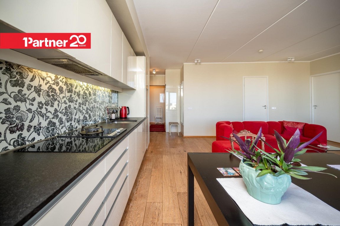 Elutuba ja köök on avatud planeeringuga ning funktsionaalne köögimööbel on varustatud kogu vajamineva tehnikaga (nõudepesumasin, külmik, sügavkülm, elektriahi, induktsioon- ja gaasipliit). Magamistoast pääseb ruumikale klaasitud rõdule (6m²). Vannitoas on olemas põrandaküte ning elektrikerisega saun. Kuna tegemist on nurgakorteriga, pääseb korterisse rohkelt päevavalgust ning vaated avanevad õhtupäikesele ja kaunitele päikeseloojangutele. Esikus on olemas mahukas garderoobikapp.