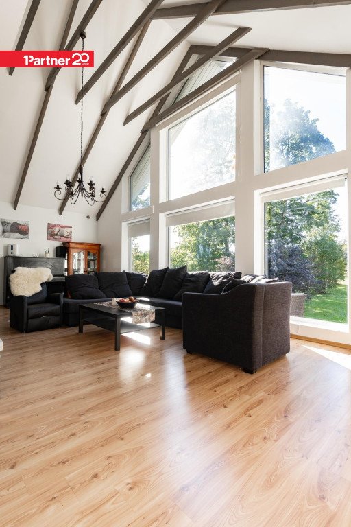 Kõrged laed (8 m), palju aknapinda ja palju valgust.