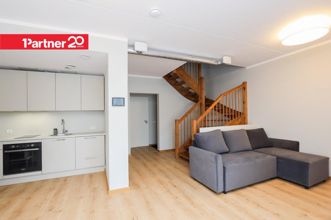 Korter paikneb läbi kahe tasapinna ning pakub kaasaegset planeeringut ja palju loomulikku valgust. Terve korterisisustus on uus ja kogu piltidel olev mööbel võib jääda üürniku kasutusse.