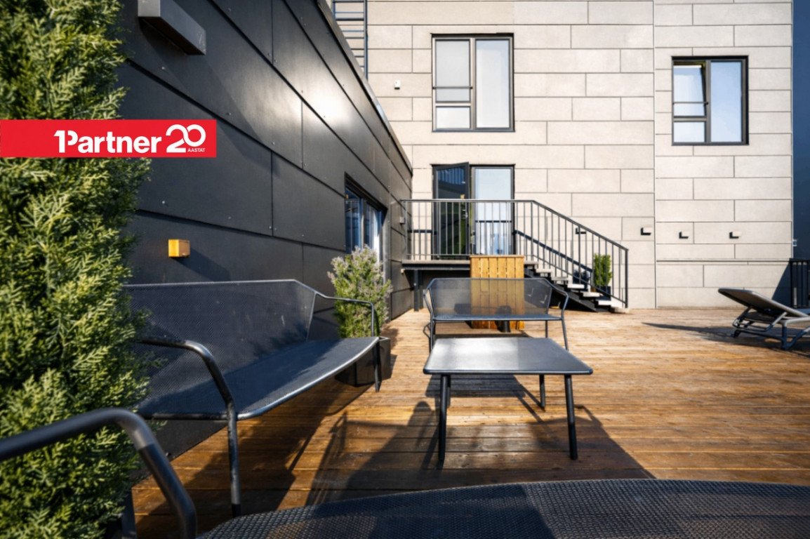 Siit avanevad kaunid vaated Tallinna katustele ja linnasiluetile. Terrass on ideaalne koht lõõgastumiseks, päikeseloojangu nautimiseks või sõpradega aja veetmiseks.