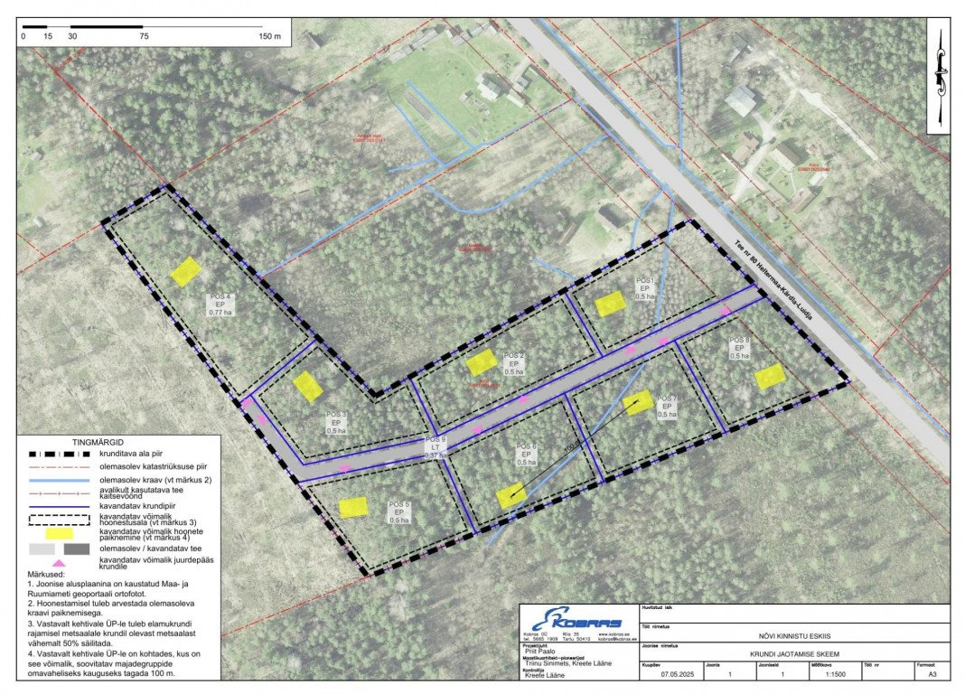Kinnistu asub kehtiva Hiiumaa valla üldplaneeringu järgi perspektiivse pere- ja ridaelamumaal, kus on minimaalse krundi suuruse nõue 0.5 ha ehitusõiguse saamiseks. Läbi detailplaneeringu menetluse on võimalik maatükk soovi korral kruntideks jagada. Olemas koostatud eskiisjoonis, kus on järgitud ÜP-st tulenevaid nõudeid. Elektri alajaam asub tariiftsoonis. Vesi ja kanalisatsioon rajada lokaalselt.