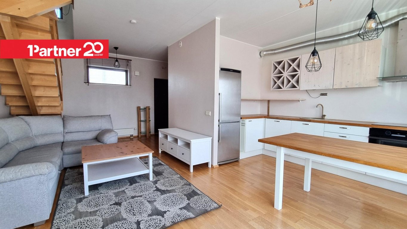 Korteri planeering jaguneb selgelt kaheks tasandiks. Alumisel korrusel paikneb avatud esik, köök ja elutuba, mis moodustavad ühtse ning loogilise terviku. Ruum ei ole killustatud, samas on tsoonid tajutavad – köögiala toetab igapäevast toimetamist, elutuba kui kodune puhkealaks. Samal tasapinnal asuv eraldi WC lisab igapäevasele kasutusmugavusele olulise praktilise väärtuse.