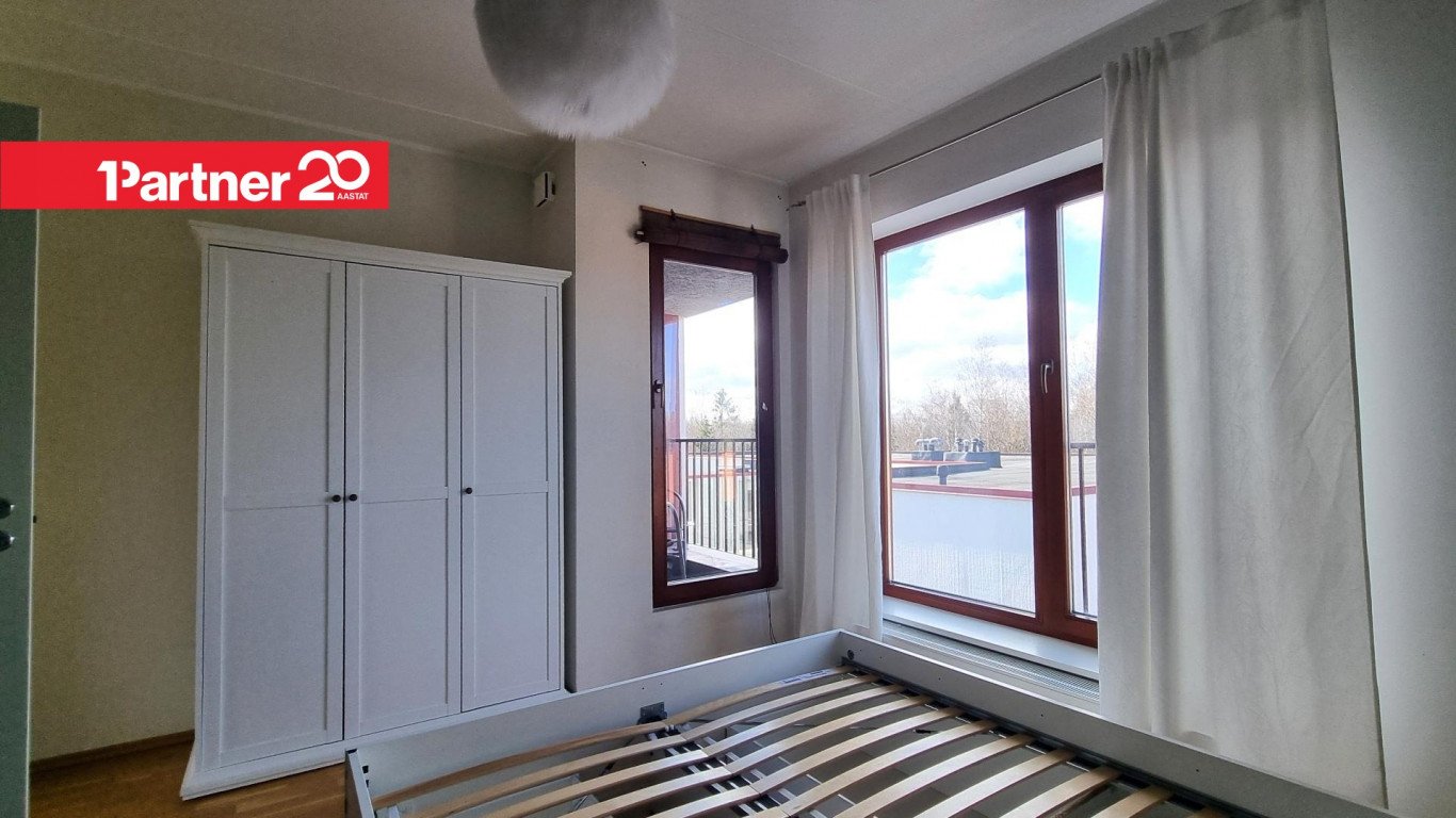 Ülemine korrus on lahendatud privaatsema eluruumiosana, kus paiknevad 2 magamistuba. Suurema magamistoa juurde kuulub lodža, mis on vaatega sisehoovi, pakkudes rahulikku ja varjatud väliruumi. Lisaks asub teisel korrusel duširuum koos tualetiga, mis teenindab mugavalt mõlemat magamistuba.