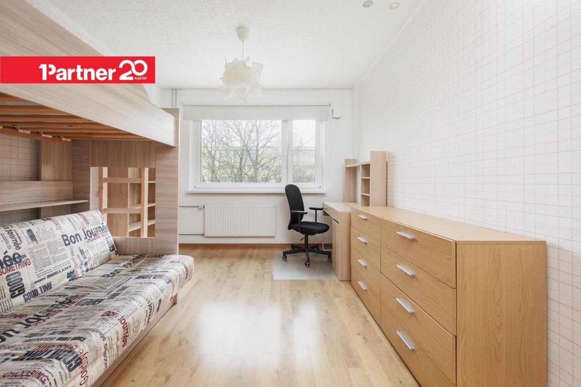 2-toaline korter ümber ehitatud 3-toaliseks, mis tähendab 3-toalise korteri funktsionaalsust 2-toalise korteri kuluga.