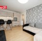 Korteri sisustuse hulka kuulub reklaamfotodel olev mööbel.