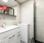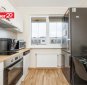 Köögimööbel koos tehnikaga: keraamiline pliit, küpsetusahi, õhupuhasti, külmik, nõudepesumasin ja pesumasin.