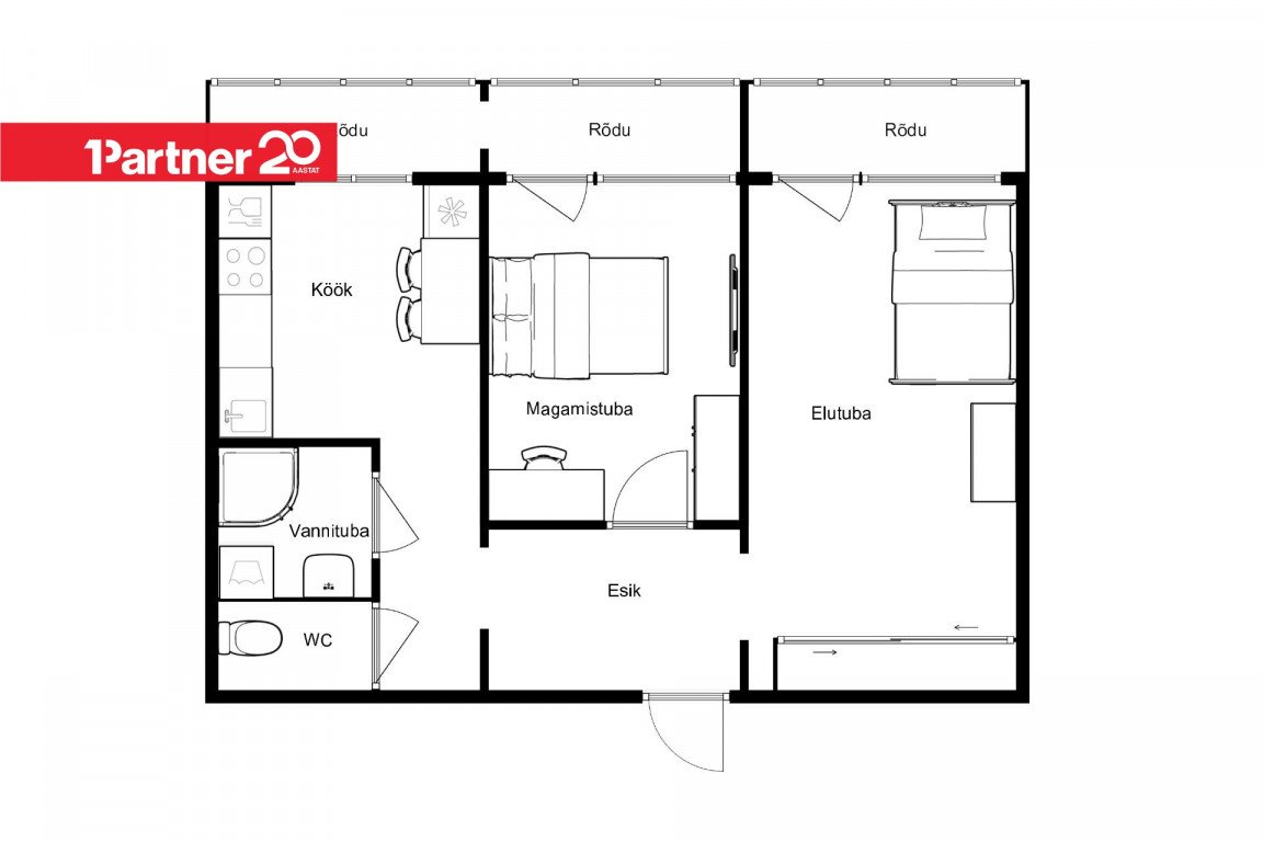 Kolme sektsiooniga pikk klaasitud rõdu. Pääs rõdule mõlemast toast.