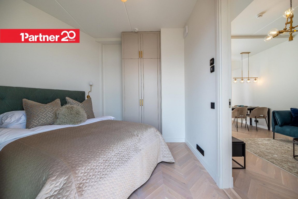 Stiilne, detailideni läbimõeldud sisekujundus ning helge atmosfäär on vaid mõned märksõnad selle korteri kirjeldamiseks. Disaini on loonud sisearhitekt Lilia Kristianson, kasutades eritellimusel valmistatud mööblit ja sisustuselemente. Siseviimistluses on läbivalt kasutatud heledaid toone ja naturaalseid materjale – seinad ja laed on värvitud, põrandal on valgest tammepuidust kalasaba parkett, mis koos maast laeni akendega loob avara tunde. Elu- ja magamistoast pääseb otse kagusuunda avatud terrassile, mis lisab elamispinnale avarust ja valgust.