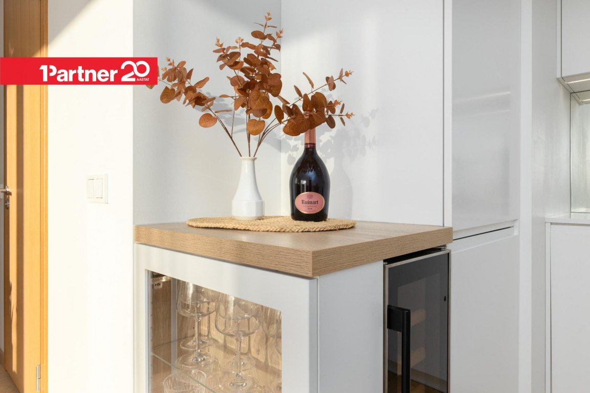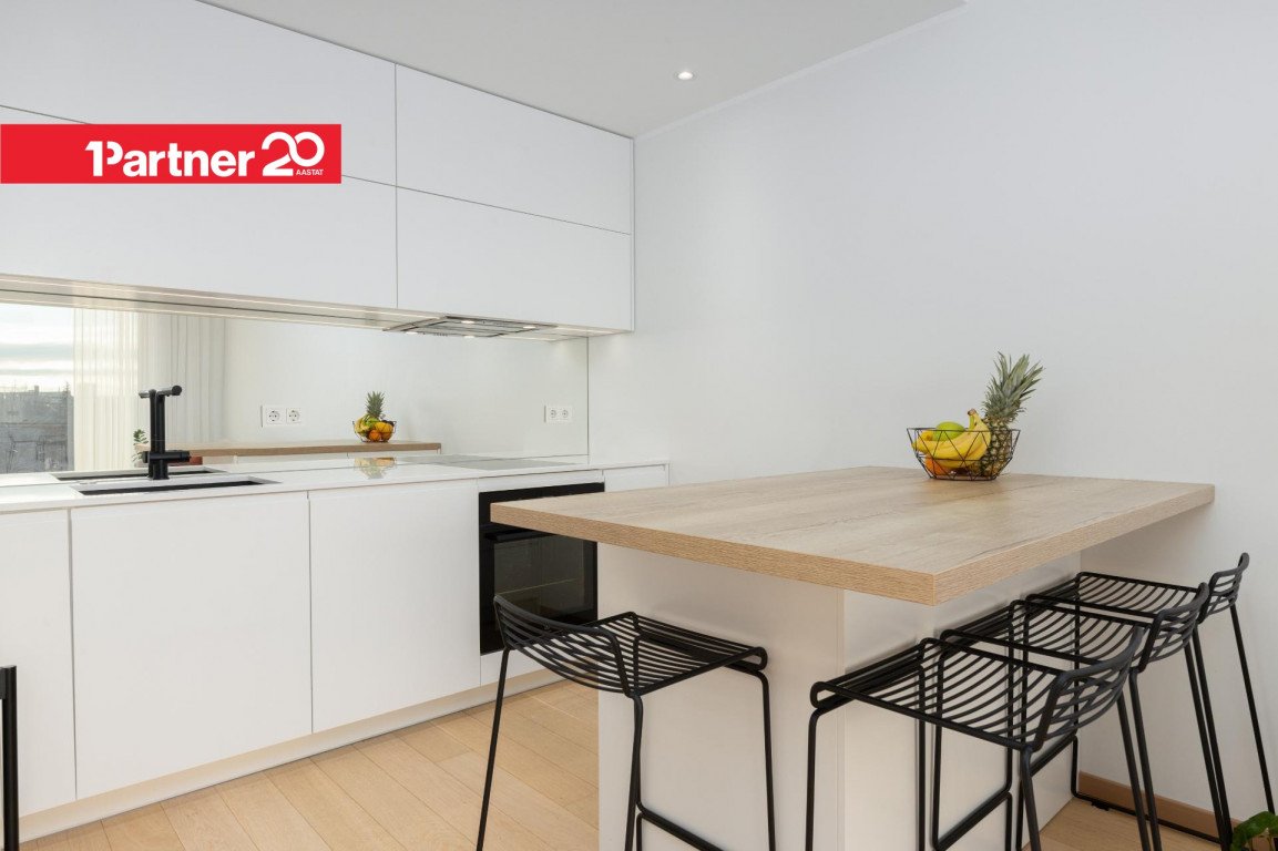 See köök on võrreldav suuremate korterite lahendustega — ruumikas, mugav ja visuaalselt väga puhas.