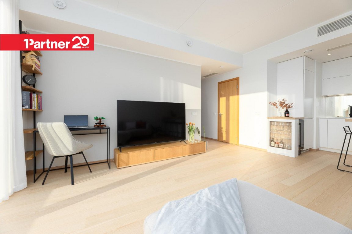 * Elutoas on juba olemas integreeritud kodukontori ala, mis on lahendatud kvaliteetsete disainriiulite ja mugava töölaua paigutusega.