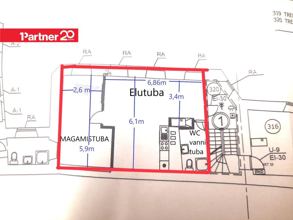 Korteri koosseisu kuulub avatud köök-elutuba, magamistuba ja wc-duširuum. Esikus ja magamistoas lükandustega ruumikad garderoobikapid. Põrandaid katab naturaalne tammeparkett.