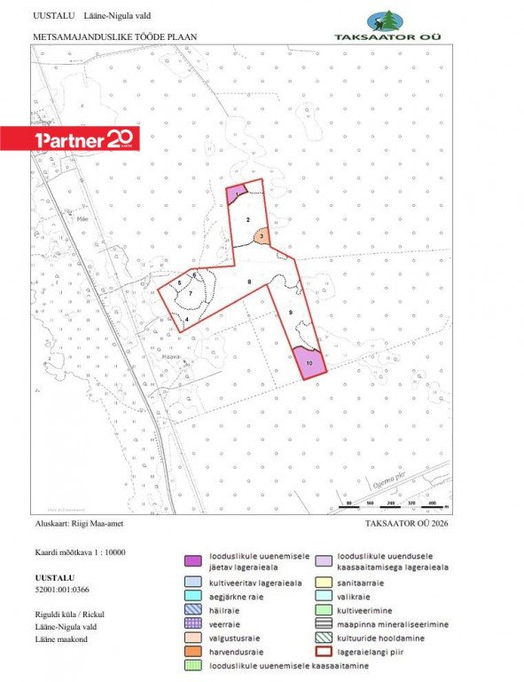Kinnistul on väiksemas osas värskelt teostatud raietööd (vt gallerii lõpus olevat pilti, eraldisel 1 ja 10 on teostatud lageraie, eraldisel 3 on teostatud valgustusraie, ülejäänud mets on jäetud alles). Olemas värskelt koostatud metsamajanduskava (saan saata tutvumiseks).