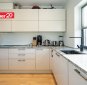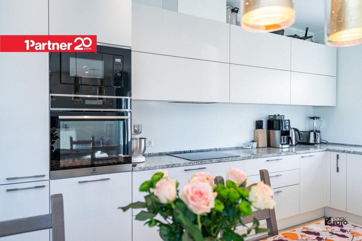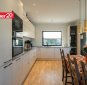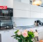 Kõrgläikega Arensi köögimööbel koos kõige vajaliku tehnikaga: külmkapp, induktsioonpliit ahjuga, nõudepesumasin.