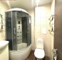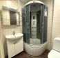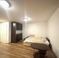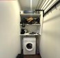 Ruumide asetus: esik, vannituba ühes wc-ga, panipaik kus on plaaditud põrand ja praegu paigutatud pesumasin, elutuba kust pääseb klaasitud suurele rõdule, avar köök.