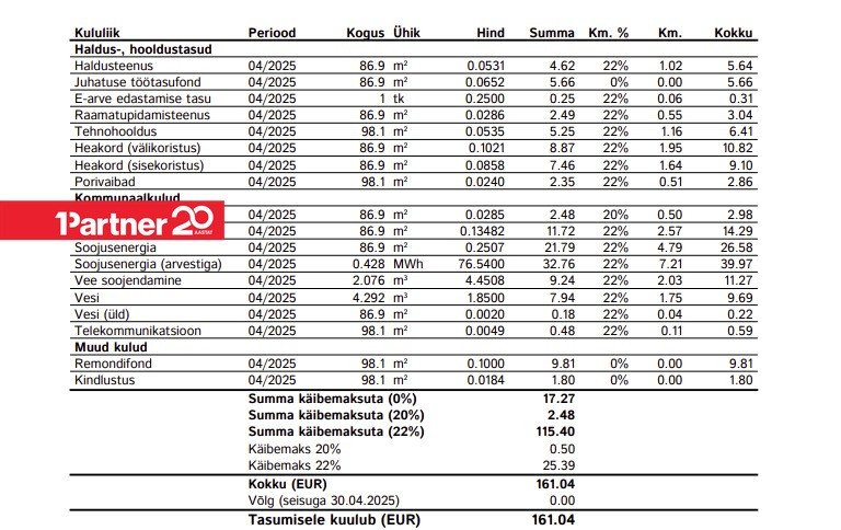 Hinnale lisandub elektrikulu ning interneti/kaabel-TV teenuse kuutasu.