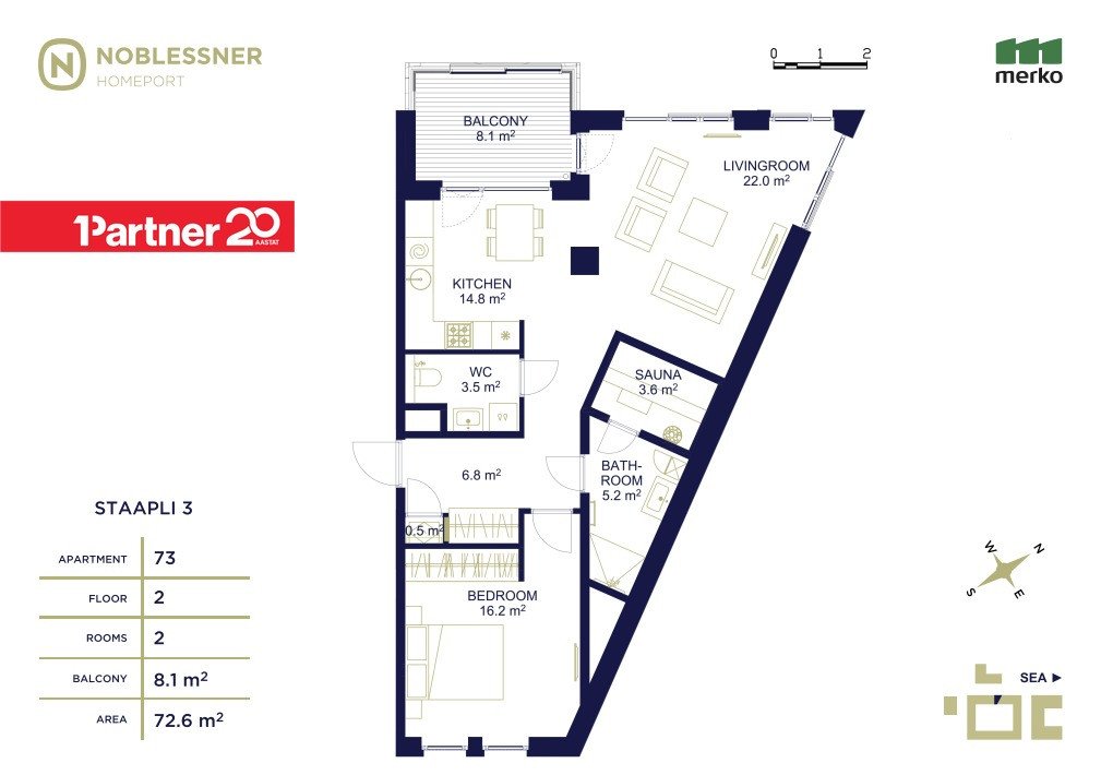 ÜÜRILE ANDA 2-TOALINE KORTER NOBLESSNERI SADAMA ELIITRAJOONIS