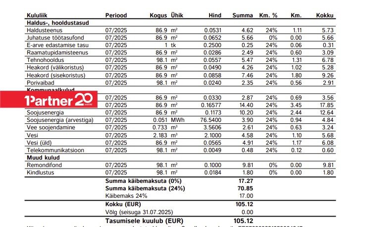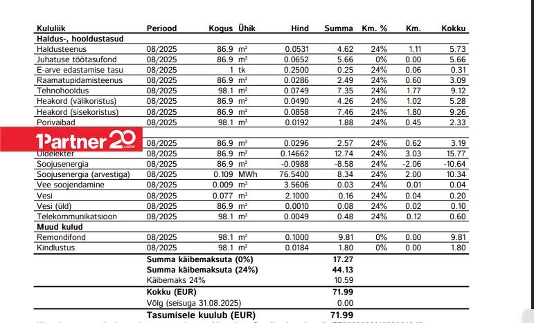 Kommunaalkulud suvel ca 100 €, talvel ca 200 €.