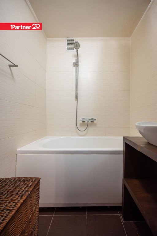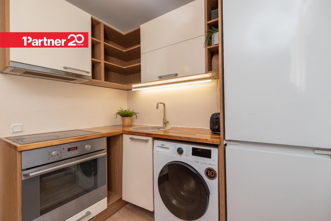 - Köögis on integreeritud mööbel koos tehnikaga: elektripliit, elektriahi, õhupuhasti, külmkapp ja pesumasin.