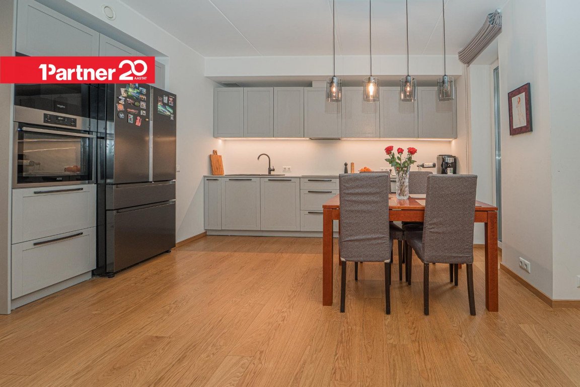 Köögimööbel on eritellimus firmast Uukren Mööbel. Induktsioonpliit ahjuga, külmkapp, nõudepesumasin.