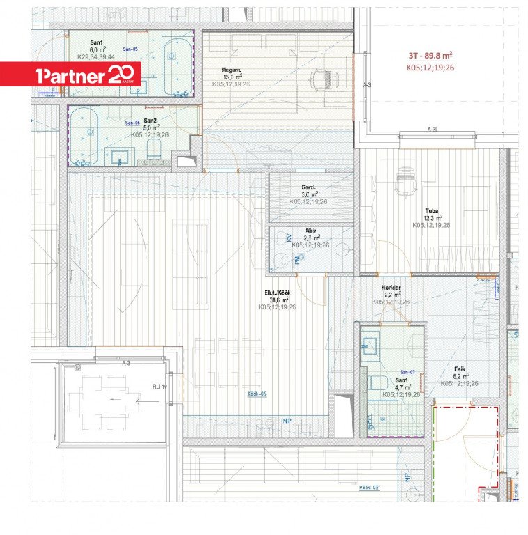 Korteri üldpind on 89.8m², lisaks rõdu 6,1m². Tänu kõrgetele lagedele tundub korter veelgi avaram ja suurem.