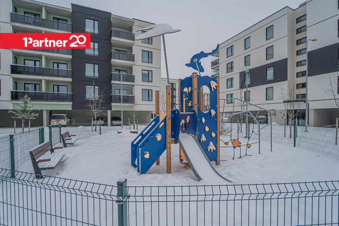 Turvaline elukeskkond peredele, lastele mänguväljak kohe maja juures.