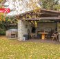 Aia varjulisemas nurgas asub katuseaune istumisala koos väliköögi ja kaminaga. Väliköögis olemas kraanikauss ja veekraan. Istumisala juures on ka kümblustünn.