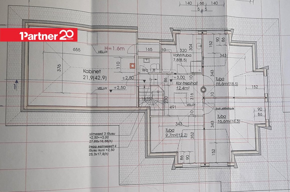Teisel korruse trepihallist viivad uksed nelja eraldiolevasse magamistuppa (21,9+16,6+16,6+9,7m²).