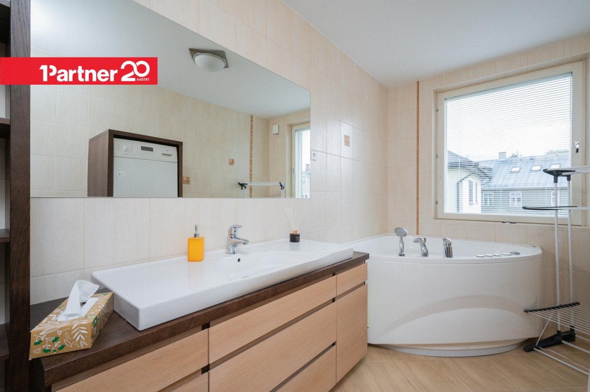 Köögimööbel on tammepuidust ja samuti kõik siseuksed. Köögimööbel koos tehnikaga, ahi, keraamiline pliit, nõudepesumasin.