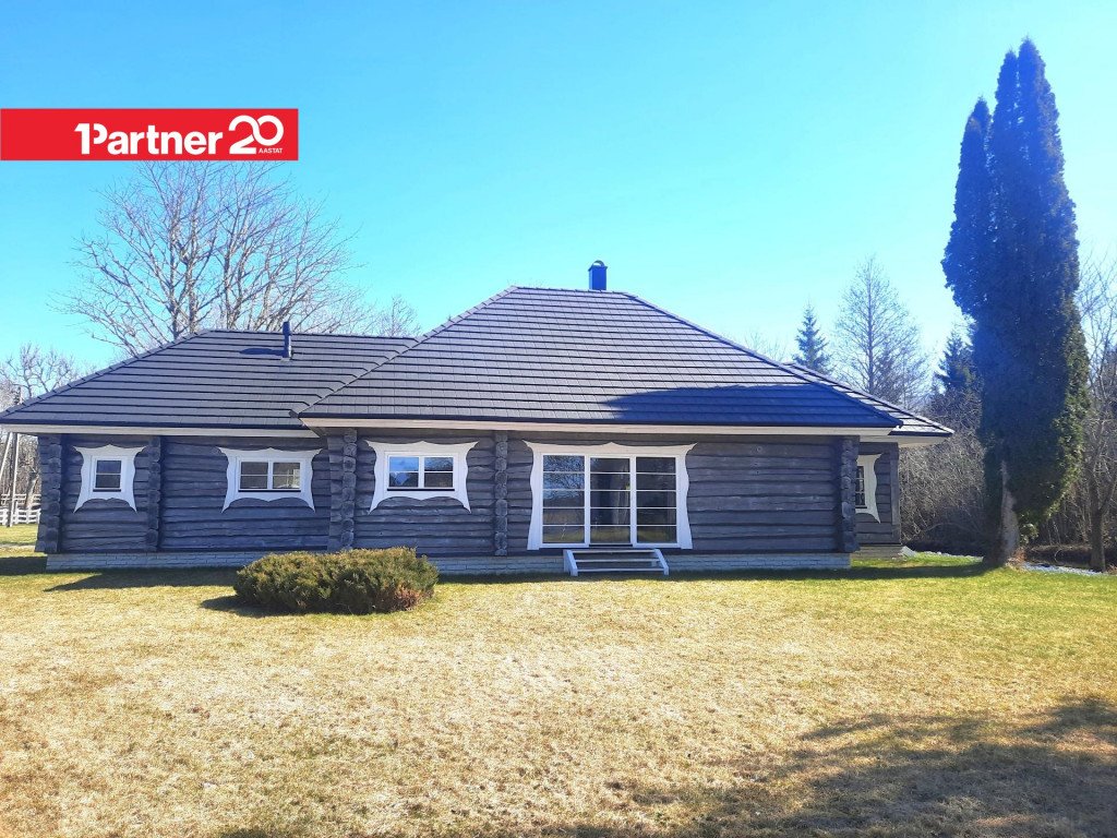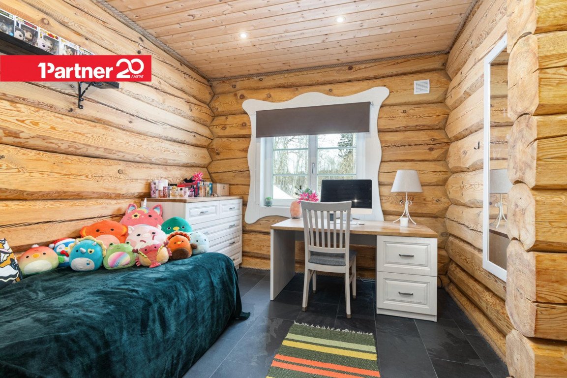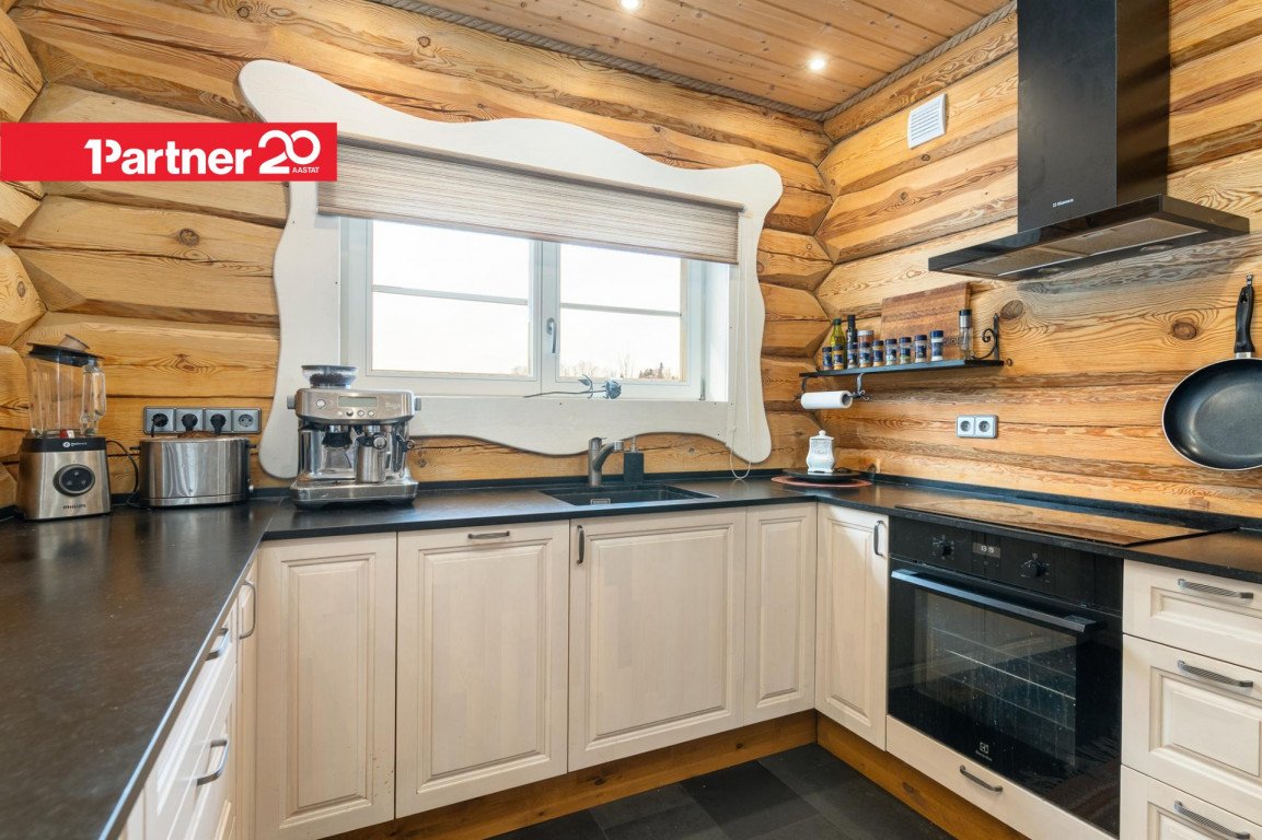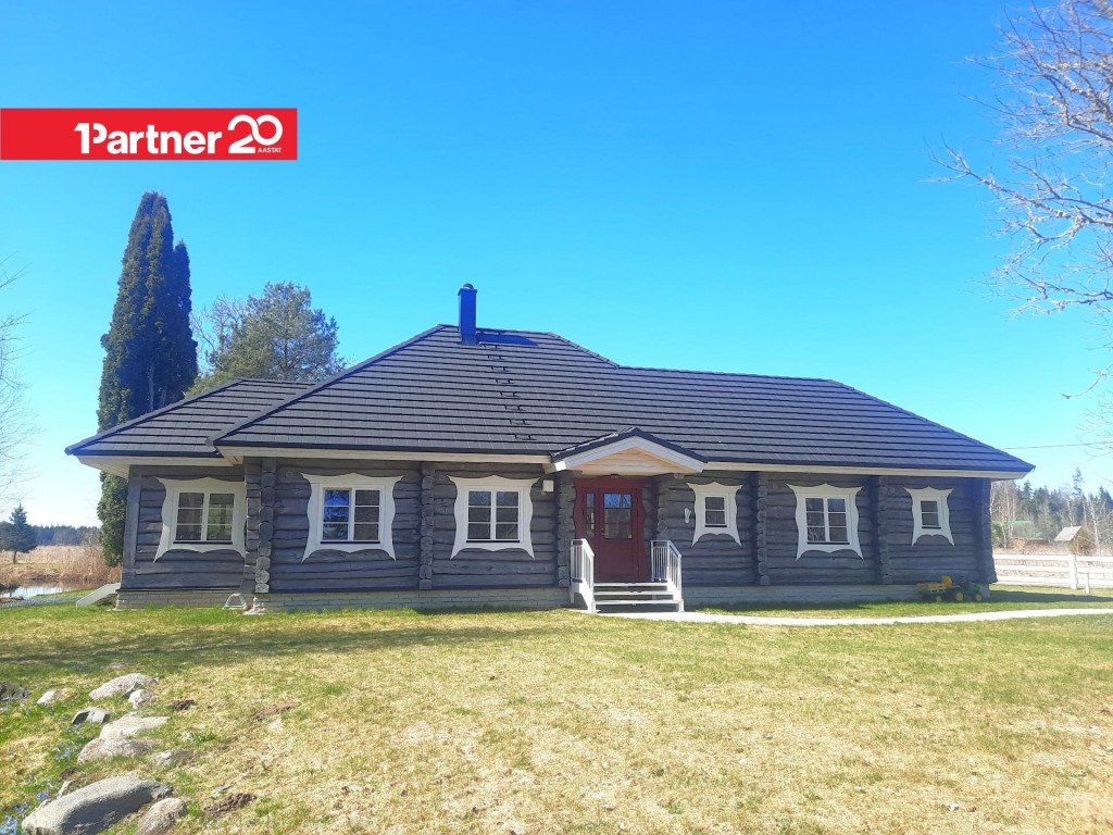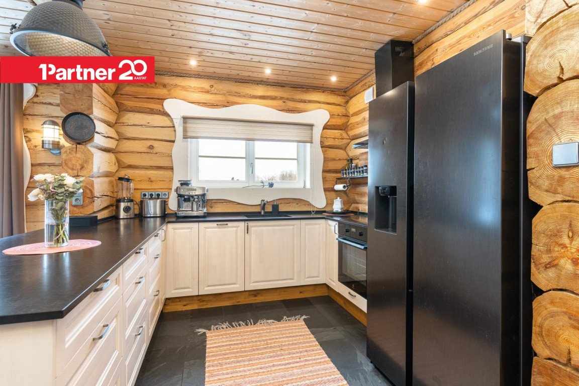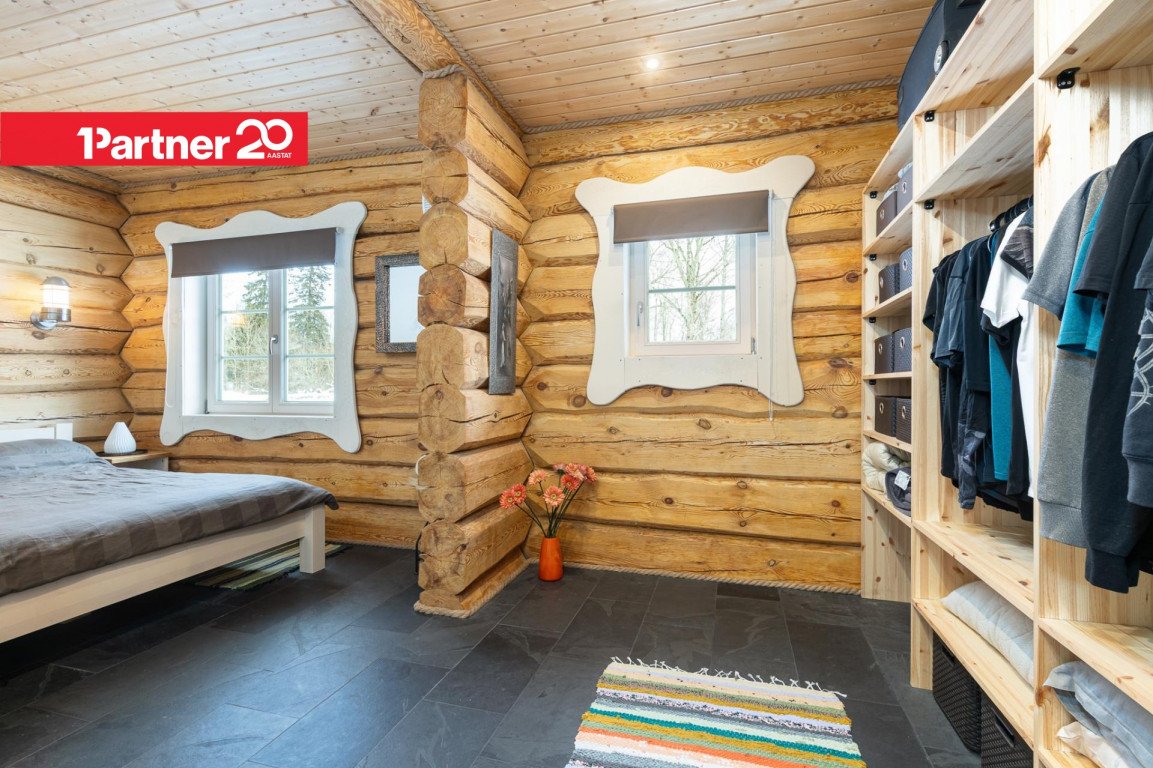 Oja kaldal ainulaadse arhitektuuriga palkmaja, mööbel hinnas.