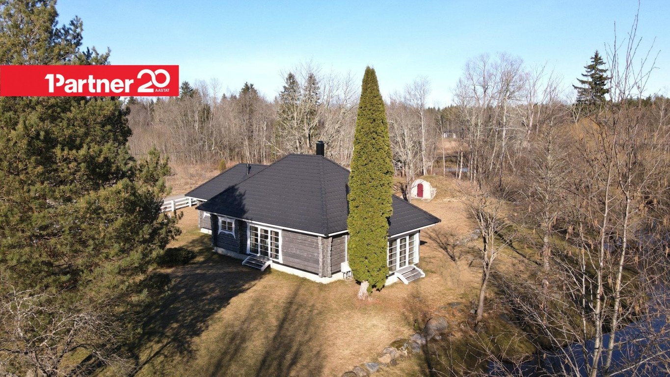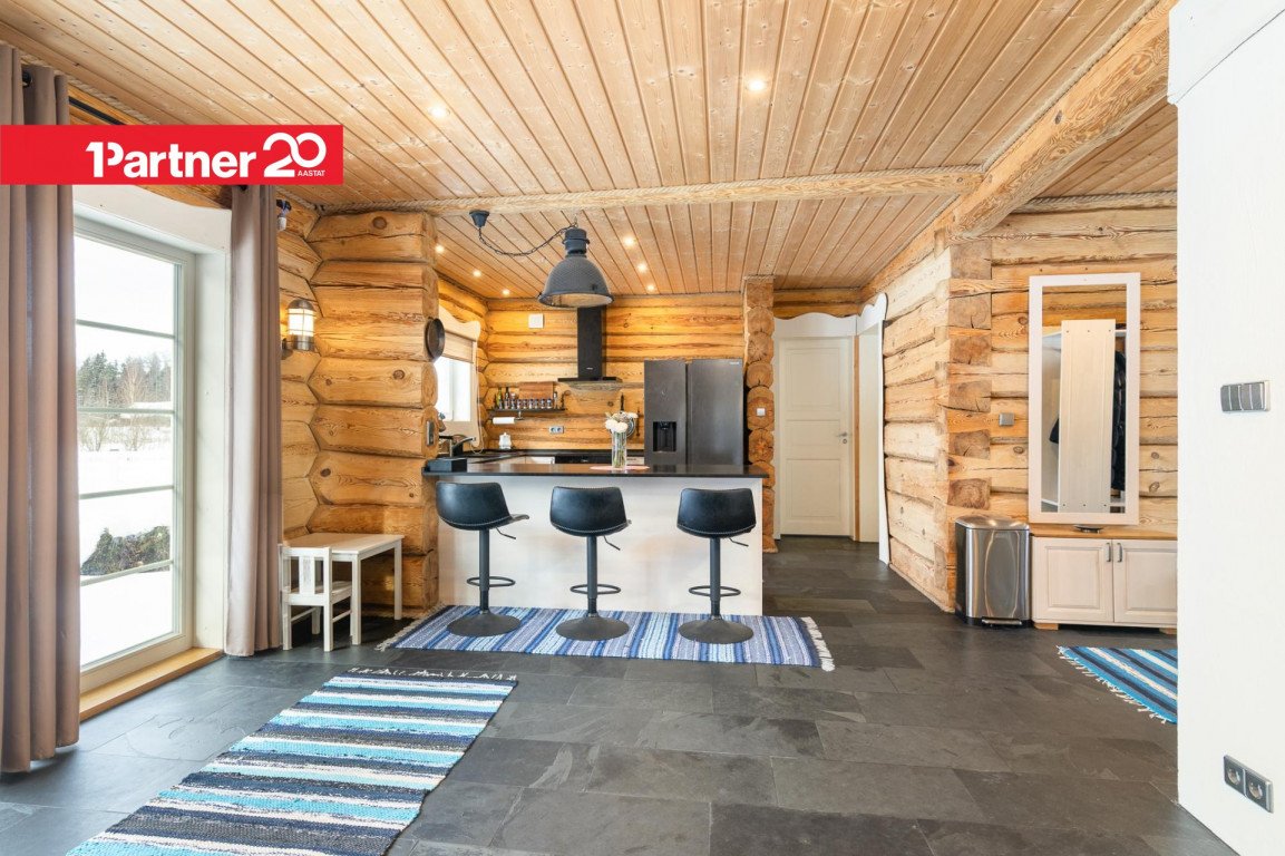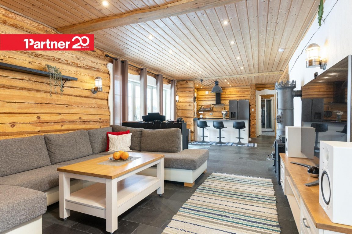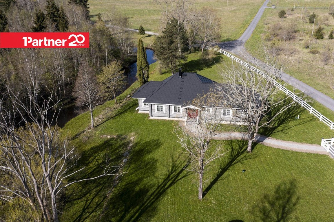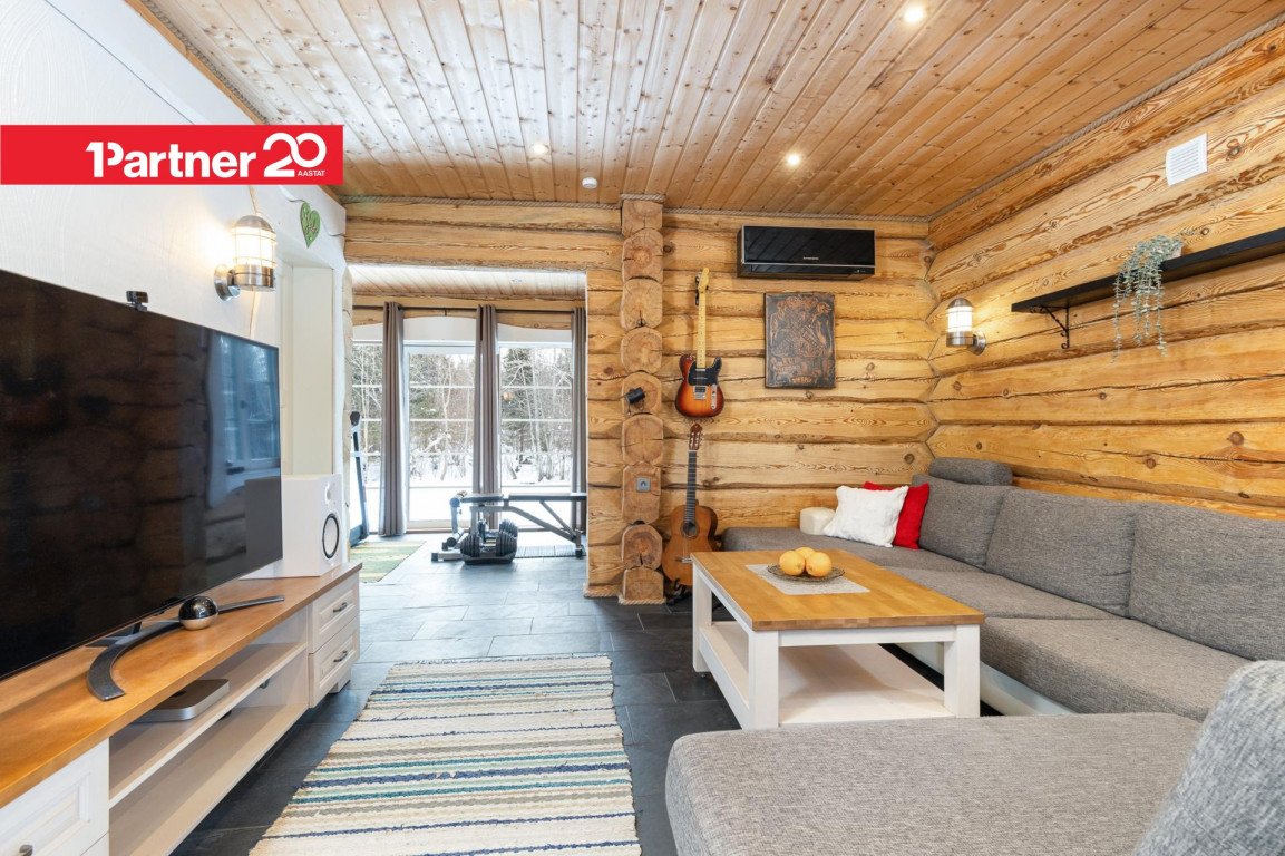 Oja kaldal ainulaadse arhitektuuriga palkmaja, mööbel hinnas.