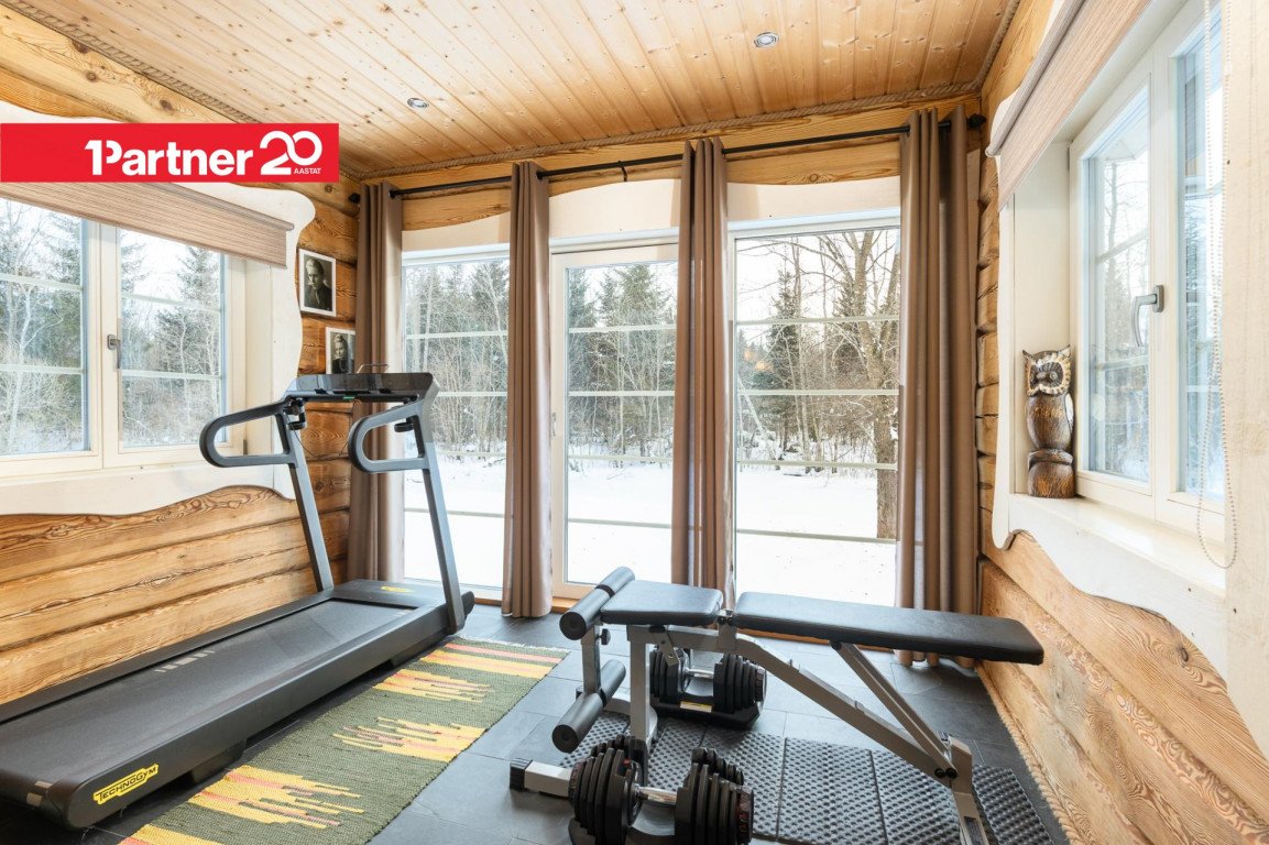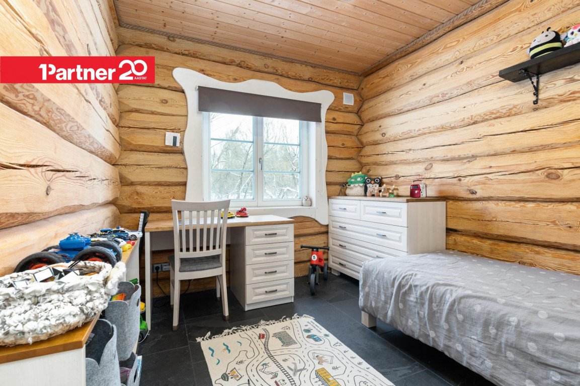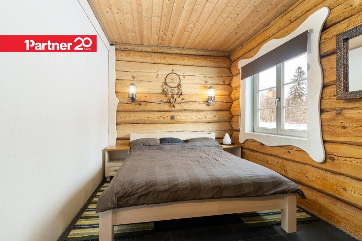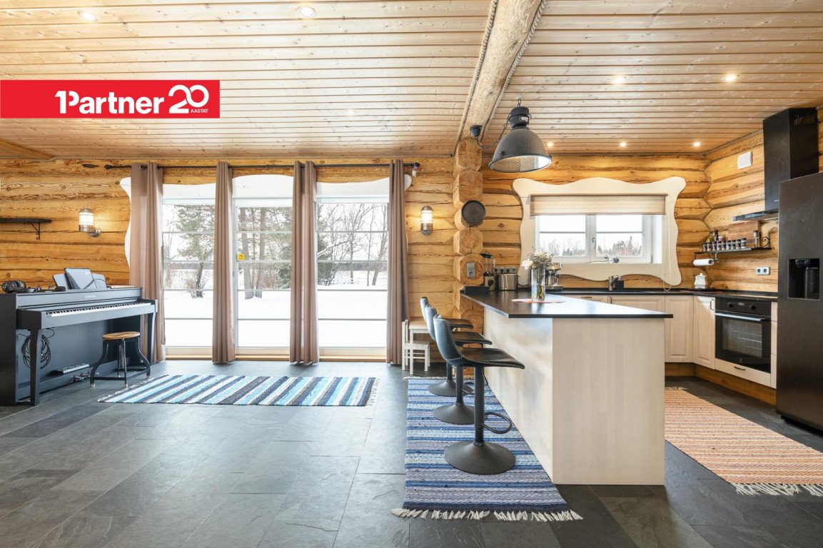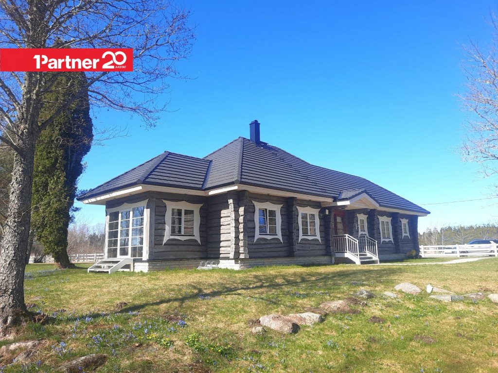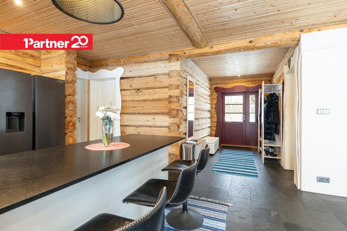 Oja kaldal ainulaadse arhitektuuriga palkmaja, mööbel hinnas.