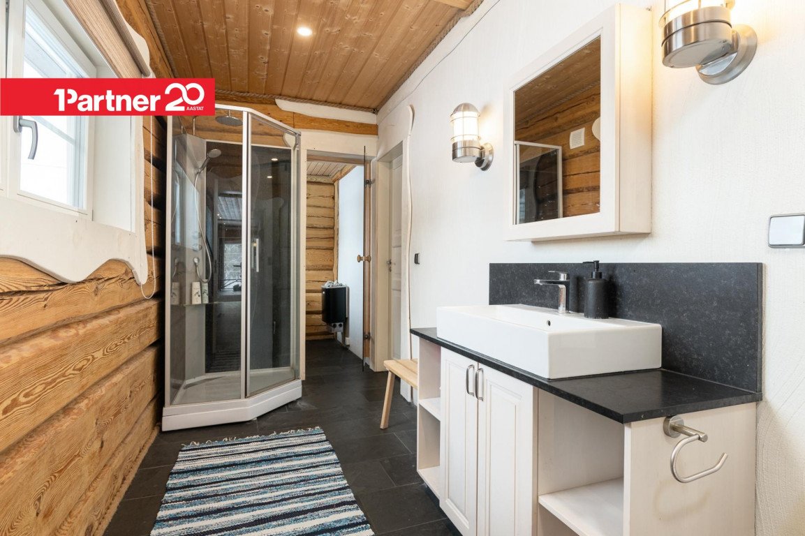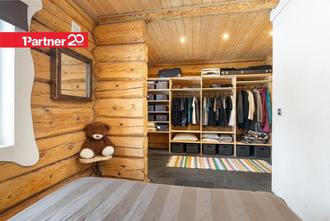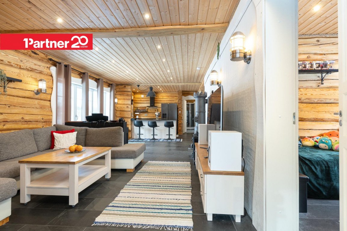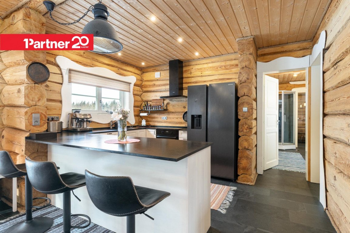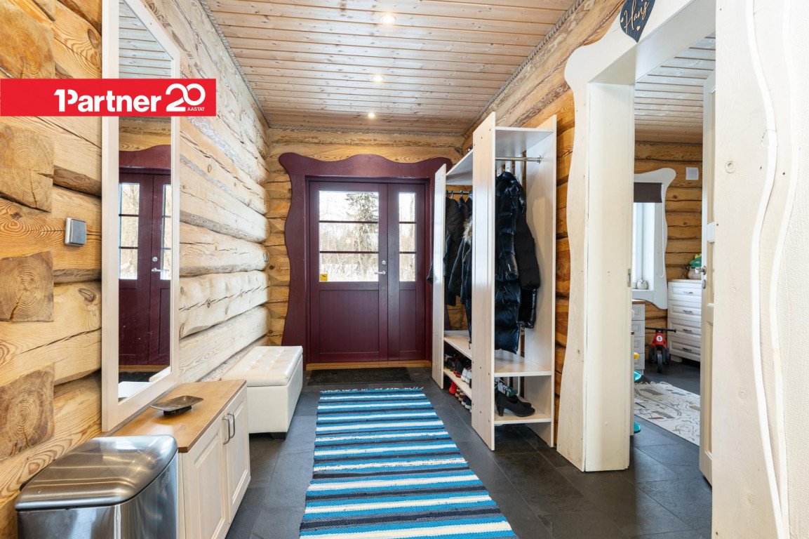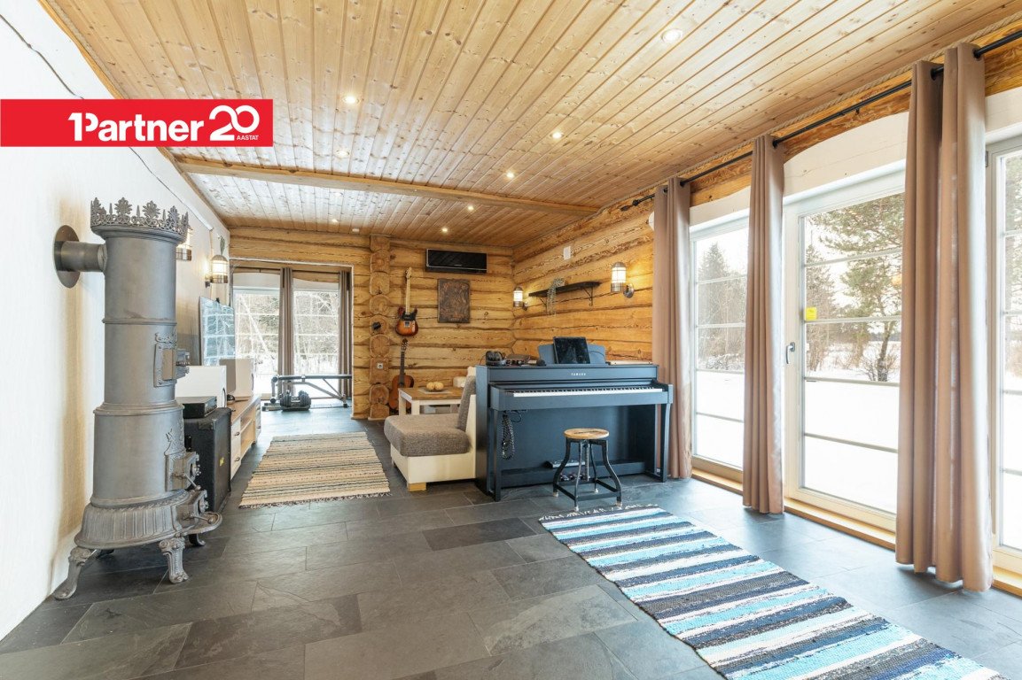 Oja kaldal ainulaadse arhitektuuriga palkmaja, mööbel hinnas.