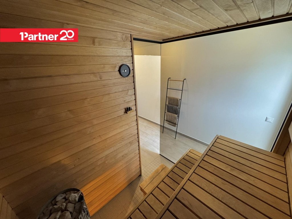 Planeering on järgmine: esik (5.4 m²), WC (2.3 m²), tuba (14.4 m²), köök-elutuba (35.3 m²), koridor (3.5 m²), tuba (12.2 m²), tuba (12.1), pesuruum (10.0 m²), leiliruum (3.2 m²), küttega garaaž (28.8 m²) ehk köetav pind kokku 127.2 m².