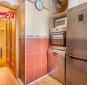 Köögis on läbimõeldud lahendus – valamu asub akna all, mis võimaldab kodutööde ajal nautida vaadet ja päevavalgust. Korter üüritakse koos fotodel nähtava mööbli ja tehnikaga: elurtoas diivan käib lahti, köögis külmkapp, nõudepesumasin, ahi, mikrolaineahi, gaasipliit.