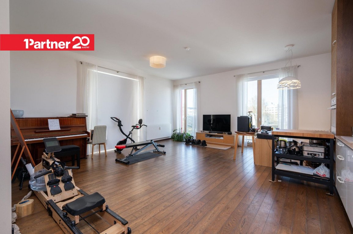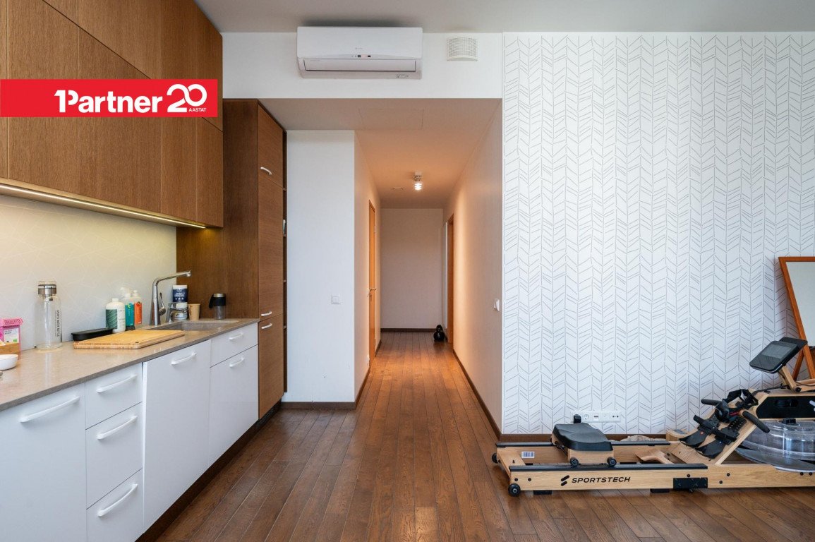 Korteris on kõrged 3 meetrised laed ja maast laeni aknad, mis loovad avara ja valgusküllase atmosfääri.